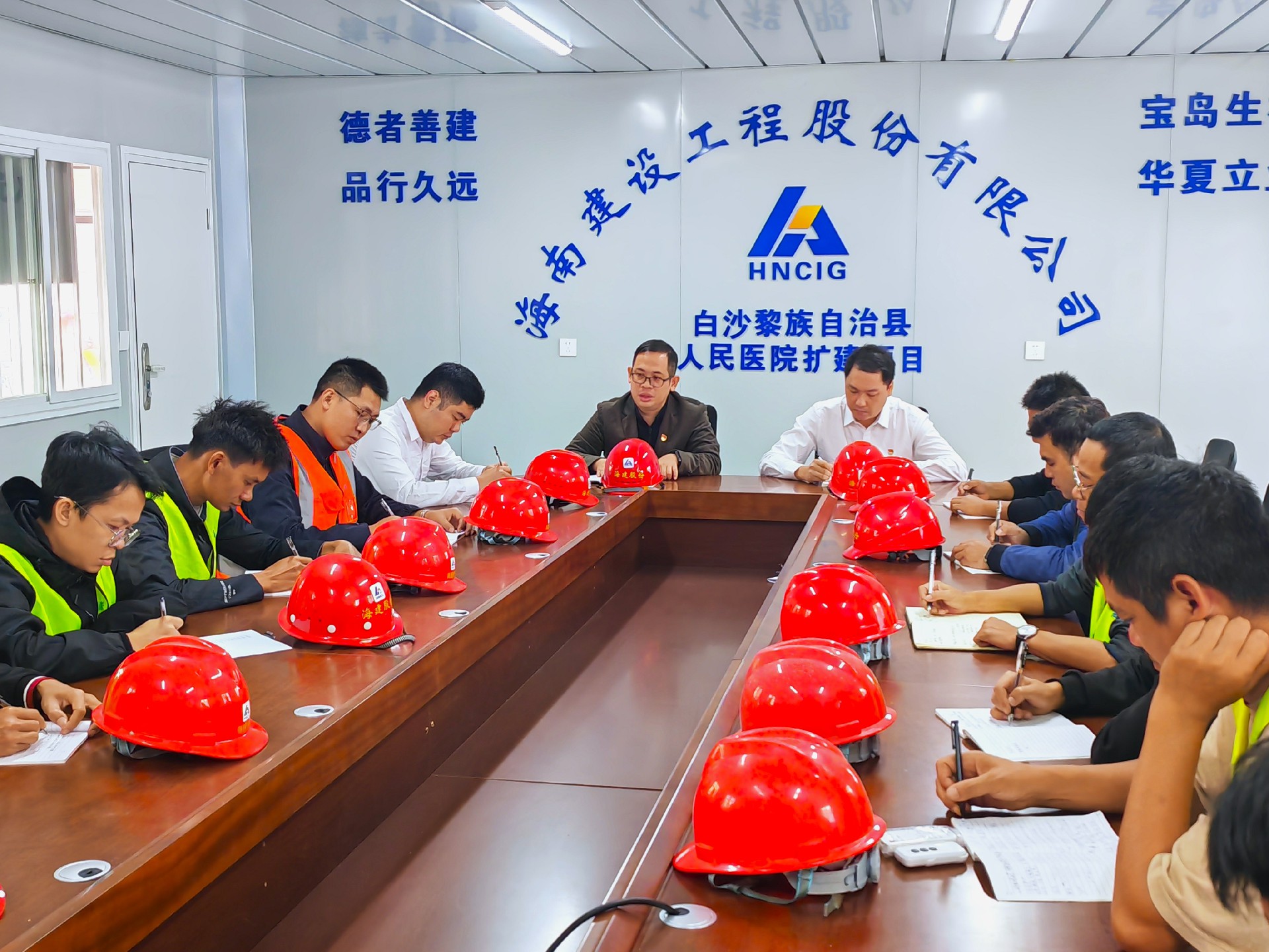 在白沙黎族自治縣牙叉鎮(zhèn)縣人民醫(yī)院擴建項目,我司黨委領(lǐng)導(dǎo)班子還在慰問活動后共同在項目臨時黨支部為全體黨員上黨課。