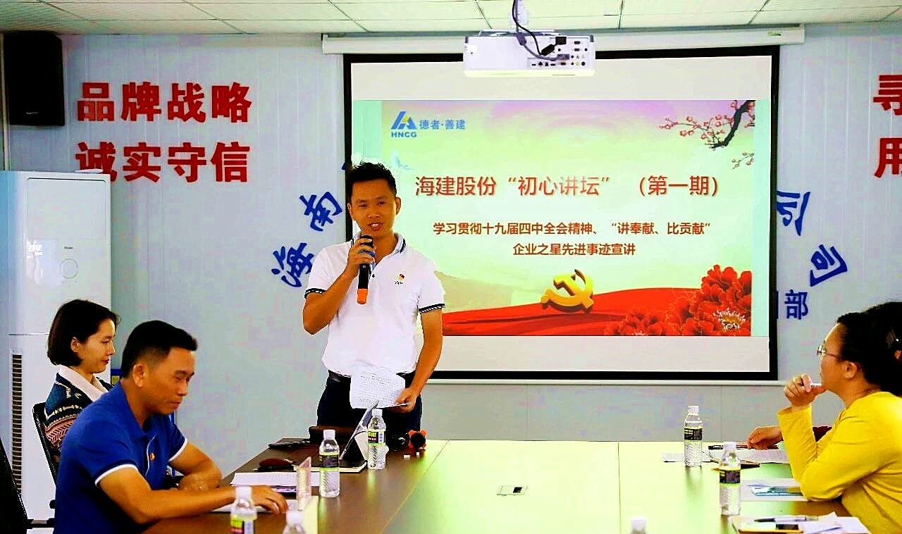 黨委書記凌海深入一線工地“上海六院海口骨科和糖尿病醫院二期項目”講授黨的十九屆四中全會精神專題黨課。
